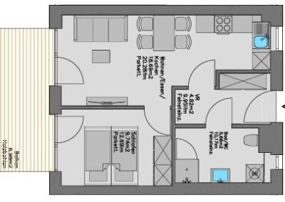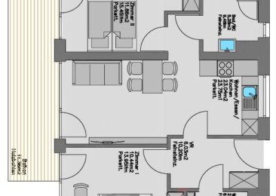Diese Wohnungen sind zwischen 38 und 59m² groß und verfügen alle über Balkon bzw. Gartenanteil.